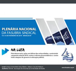 15 de fevereiro de 2019 16:39A Plenária Nacional da FASUBRA Sindical começou nesta sexta-feira (15), no auditório da ADUnB (Associação dos Docentes da UnB), em Brasília, com a discussão da proposta de reforma da Previdência que deve ser encaminhada ao Congresso Nacional na próxima semana. O advogado da Federação Cláudio Santos apresentou um panorama geral do texto que circulou há... Ver artigo
