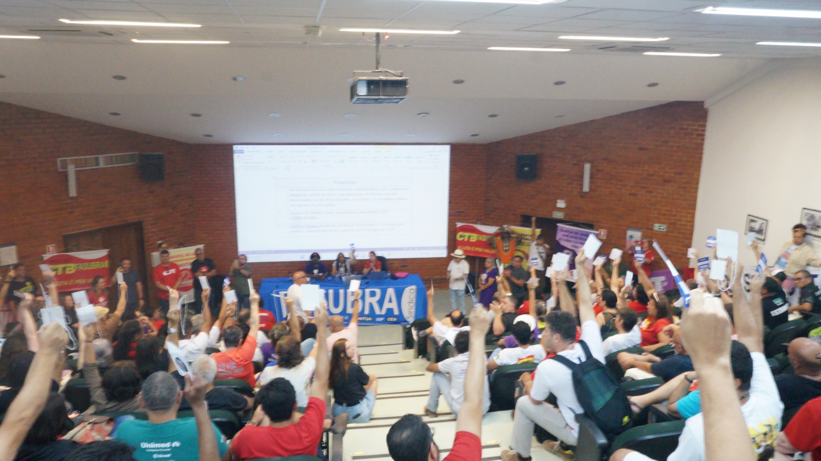No período da tarde, os trabalhos foram dedicados aos encaminhamentos, consolidando as propostas de ações e a votação do texto de avaliação de conjuntura debatido ao longo da plenária. As definições reforçam a necessidade da unidade da categoria técnico-administrativa em educação e da ampliação da mobilização nacional em defesa dos serviços públicos, da democracia e dos direitos conquistados, bem como do cumprimento pleno do acordo de greve.