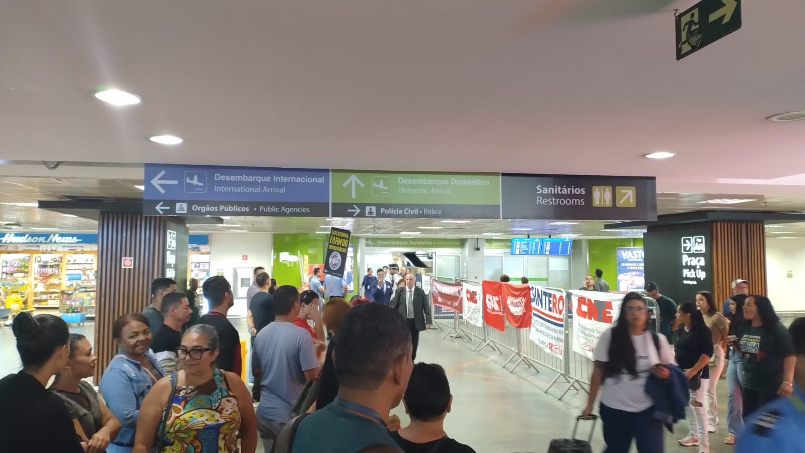 A direção nacional da FASUBRA Sindical marcou presença, na manhã desta terça-feira (18), na área de desembarque do Aeroporto Internacional de Brasília, em mais uma ação de pressão política para barrar a Reforma Administrativa. O ato fez parte da estratégia nacional de entidades do serviço público para dialogar diretamente com parlamentares que desembarcaram na capital federal ao longo do dia.