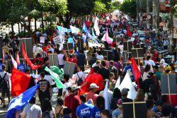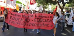 População ocupa avenida Rio Branco, em Juiz de Fora, em defesa da Previdência e da Educação